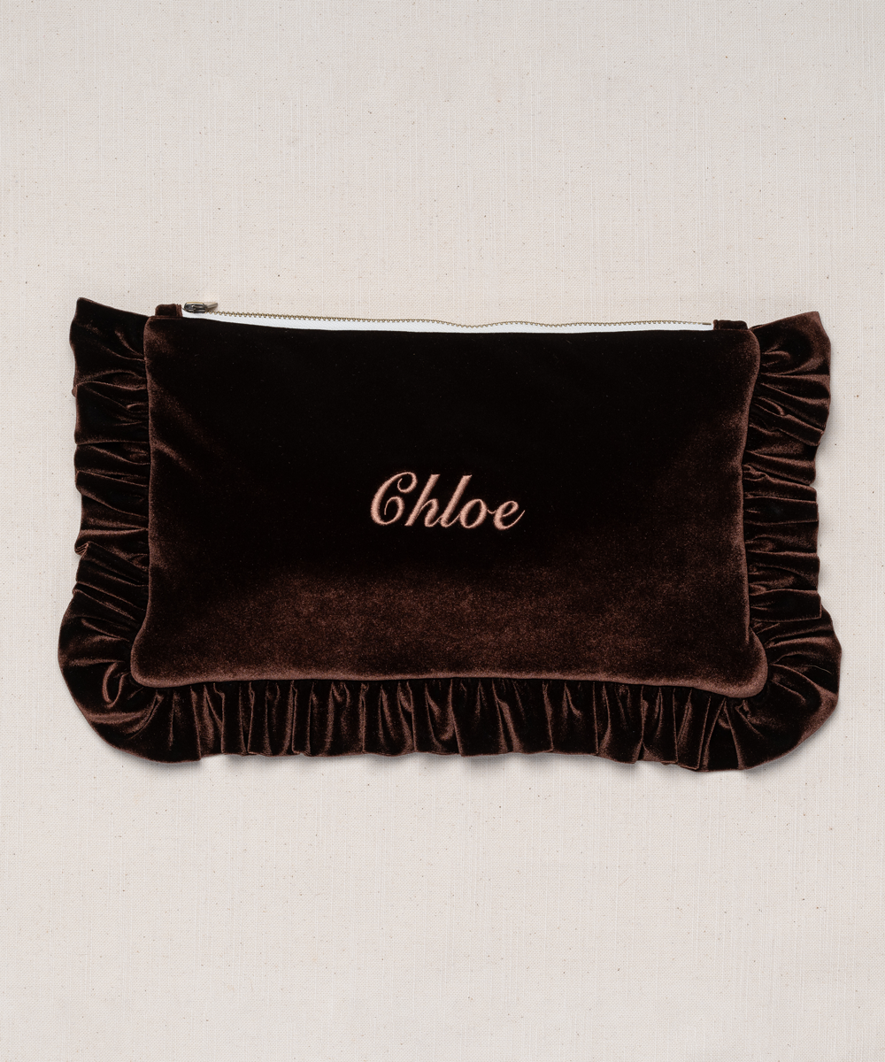 Embroidery applied to supplied pouch. Please choose fonts, thread colour and embroidery height