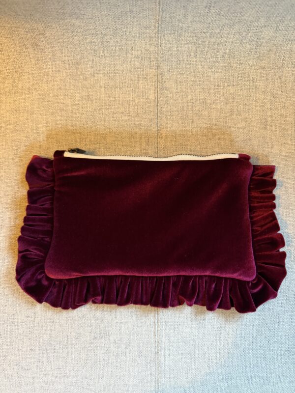 The Burgundy Velvet Mini Ruffled Pouch