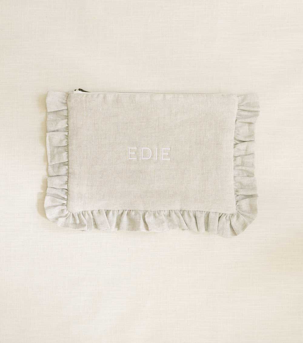 Embroidery applied to supplied pouch. Please choose fonts, thread colour and embroidery height