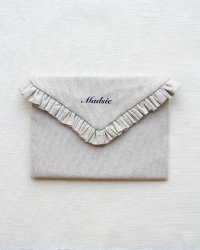 Embroidery applied to supplied pouch. Please choose fonts, thread colour and embroidery height