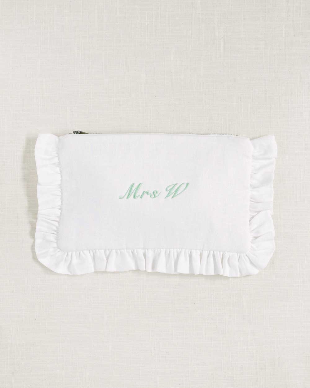 Embroidery applied to supplied pouch. Please choose fonts, thread colour and embroidery height